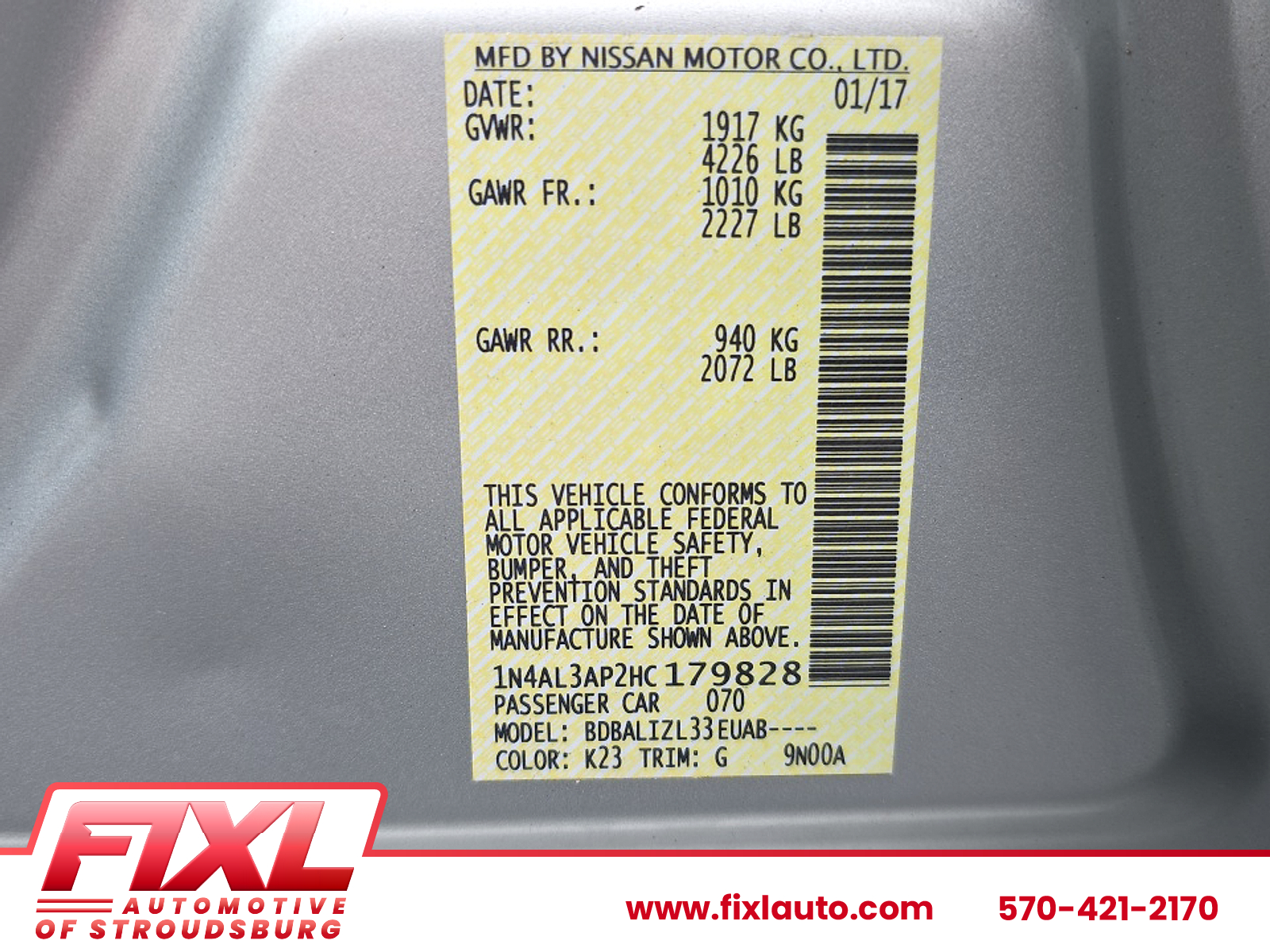 VIN 1N4AL3AP2HC179828