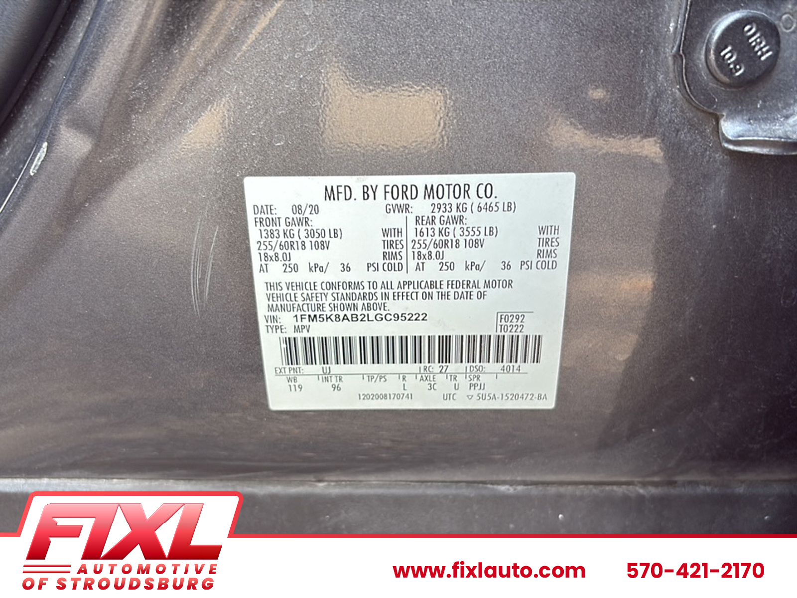 VIN 1FM5K8AB2LGC95222